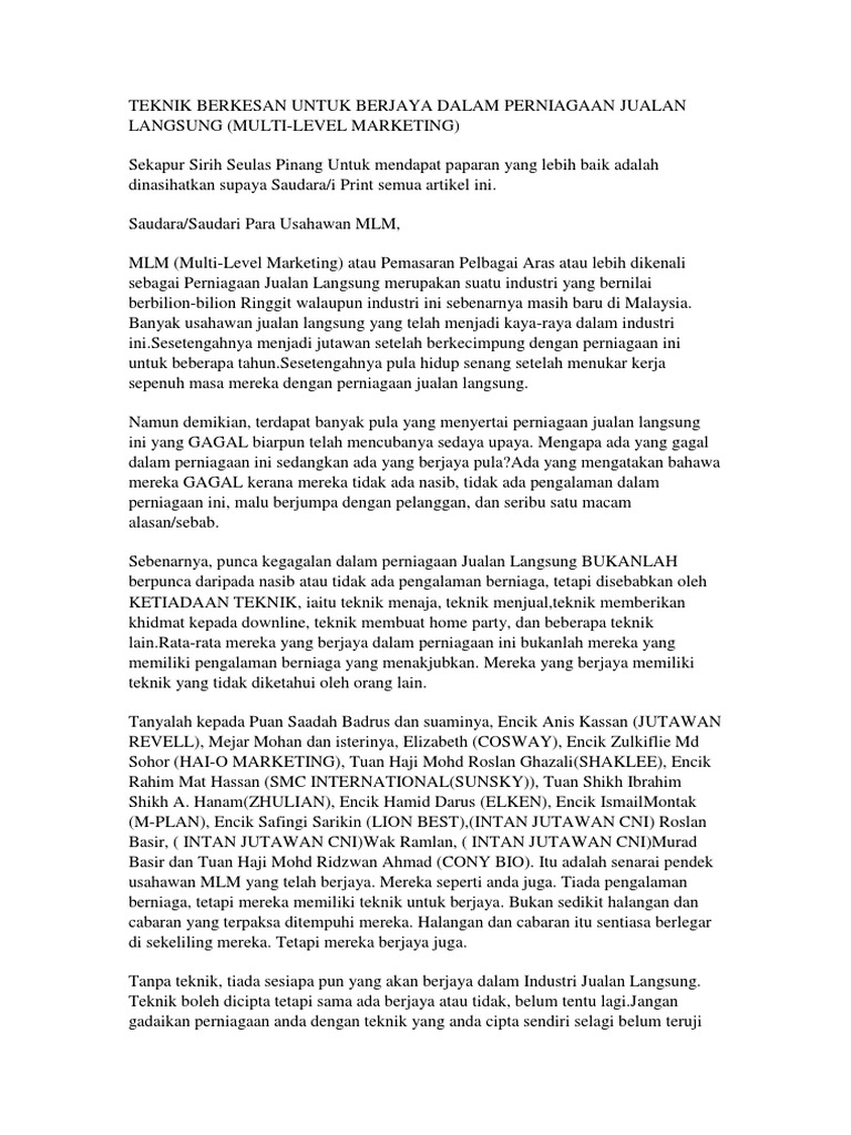 Teknik Berkesan Untuk Berjaya Dalam Perniagaan Jua Pdf
